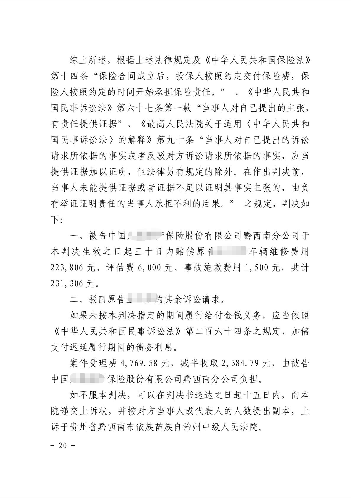 贵州省安龙县人民法院民事判决书