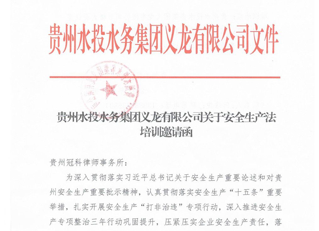 贵州水投水务集团义龙有限公司关安全生产法培训邀请函