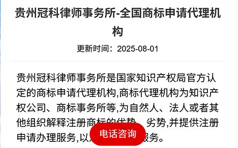 贵州冠科律师事务所是国家知识产权局官方认定的商标申请代理机构,商标代理机构为知识产权公司、商标事务所等,为自然人、法人或者其他组织解释注册商标的优势、劣势,并提供注册申请办理服务,以及提供维权服务。